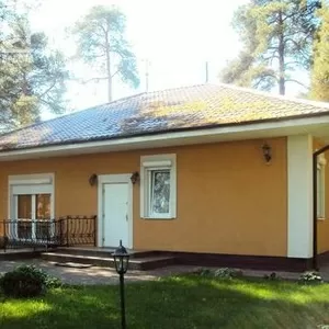 Жилой дом. Брестский р-н. Расположен в живописном месте, в лесу, на окраине деревни. Вокруг вековые сосны, в непосредственной близости река Мухавец. Блок / металлочерепица. 1 этаж. Общ. - 111, 4 кв.м, жил.- 79, 9 кв.м., 4 комнаты. Общ. СНБ. - 111, 4 кв.м. Коммуникации: электричество, отопление - электрокотел, камин, водоснабжение - скважина, канализация - местная.