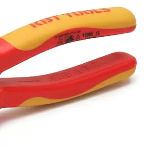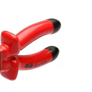 Для работы под напряжением до 1000 В Материал рукояток: двухслойная диэлектрическая пластизоль. Внутренняя изоляция – желтого цвета, внешний слой изоляции – красного цвета Зоны захвата для плоских и круглых деталей Режущие кромки дополнительно закалены токами высокой частоты. HRC 62 Резка твердой стальной проволоки до 1.