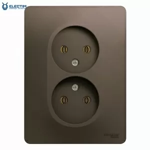 Розетка двойная без заземления, 16А, 250В, в сборе, ШОКОЛАД