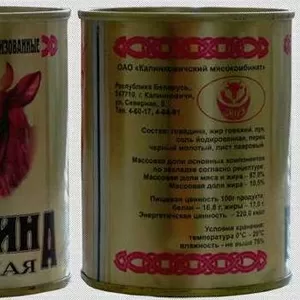 Свиная тушенка, ГОСТ BY 697-84 СПК "Слава труду", Гродненская обл, Дятловский район, г.п. Козловщина. Сертификаты. 300 Упаковок. Безналичный расчет. Звоните, договоримся..