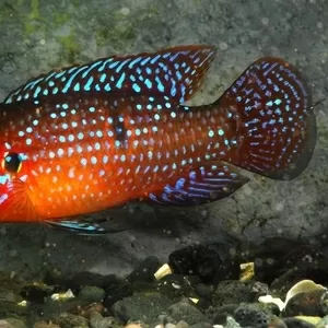 Место обитания воды юго-восточный Азии, выростает обычно до 10 см, самцы и самки имеют одинаковую яркую окраску, предлогаемые рыбки переведены на пресную воду и сухой корм, полностью адаптированы, просты в содержании, так же в наличии около 40 видов цихлид озеро Малави, Таньганика, американские цихлиды и другие рыбки совместимые с ними, подробнее на сайте aquacyclide.