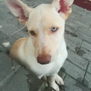 Найдена собака , недалеко от фолюша, точное место в лс или по телефону. На шее след от ошейника. Девочка , до года. Не ухоженная. Глаза разные : один глаз голубой , другой карий. Подбила машина, от испуга убежала. +375292672491.